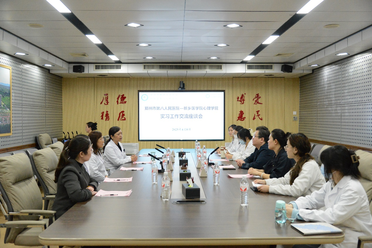 陈宏一行首先到郑州市第八人民医院看望实习学生并举行座谈。郑州市第八人民医院党委委员、副院长孔德荣对学院一行的到来表示热烈欢迎,并介绍了医院的发展现状和学生的带教培养情况等,实习生们分别分享了实习感受,陈宏对郑州市第八人民医院给予学院实习工作的大力支持表示衷心感谢,对实习生取得的成绩给予高度认可。期望双方加大人才培养和科研合作力度,推进深化合作,为精神卫生和心理卫生事业培养更多高质量应用型人才。