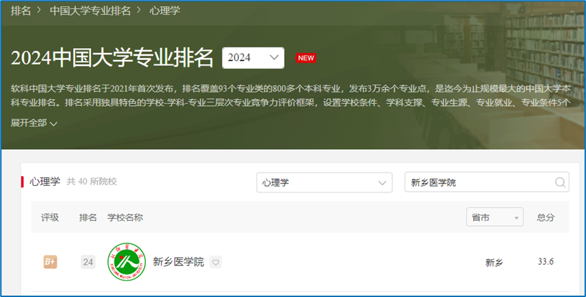 近日,备受瞩目的2024软科中国大学专业排名榜单揭晓,我院心理学类的两个专业以卓越的实力和表现,荣登该排名榜并被评为B+专业,其中,心理学专业位列全国第24名,应用心理学专业位列第36名。