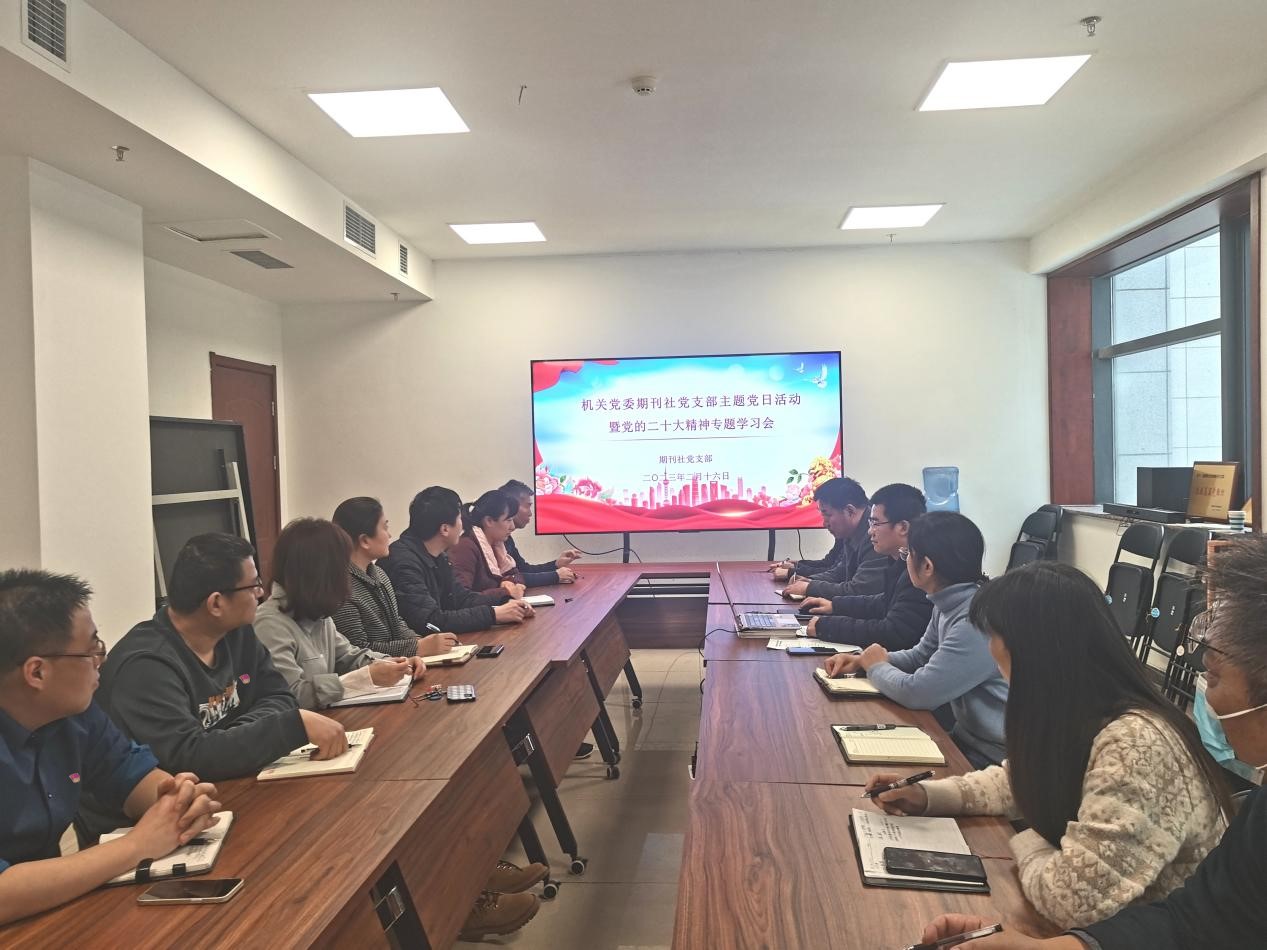 为深入学习宣传贯彻党的二十大精神,统一思想、凝聚共识,按照学校主题党日活动工作安排,2月16日下午,期刊社党支部在期刊社党建活动中心举行主题党日活动暨党的二十大精神专题学习会,会议由支部副书记徐自超主持。