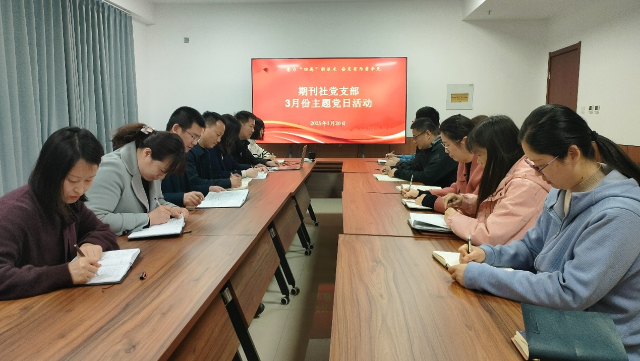 3月20日下午,期刊社党支部在党建活动中心开展《着力“四高”新追求 奋发有为勇争先》主题党日活动,支部书记徐自超主持会议,全体党员参加。