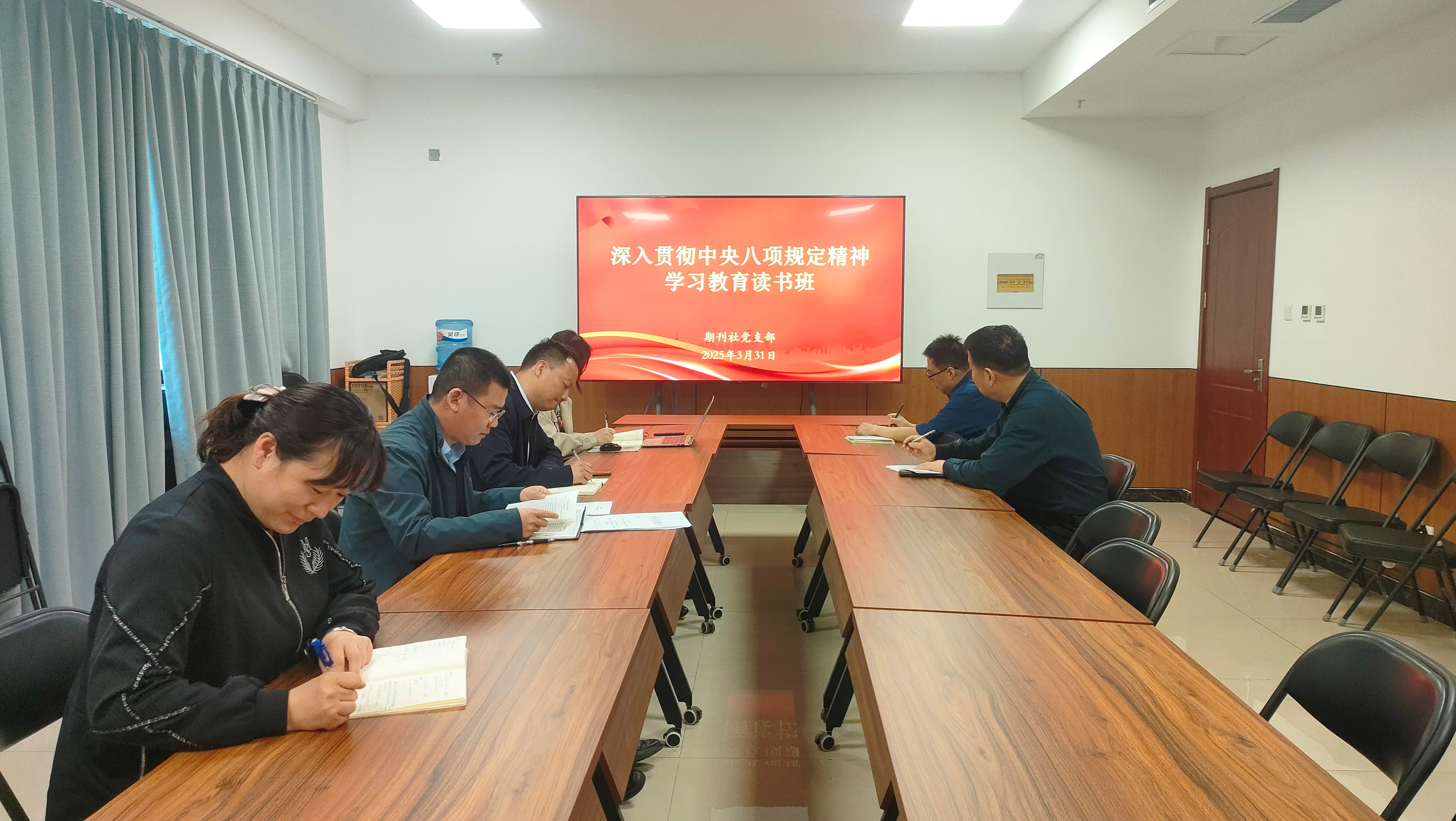 3月28日、31日,期刊社在党建中心举办深入贯彻中央八项规定精神学习教育读书班,支部书记徐自超主持会议,期刊社班子成员及支部委员参加。