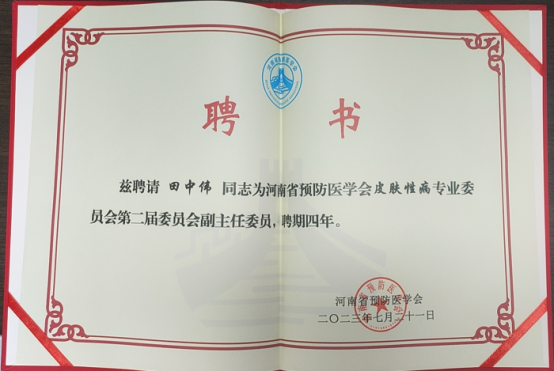 会上,田中伟教授当选为河南省预防医学会皮肤性病专业委员会第二届委员会副主任委员。