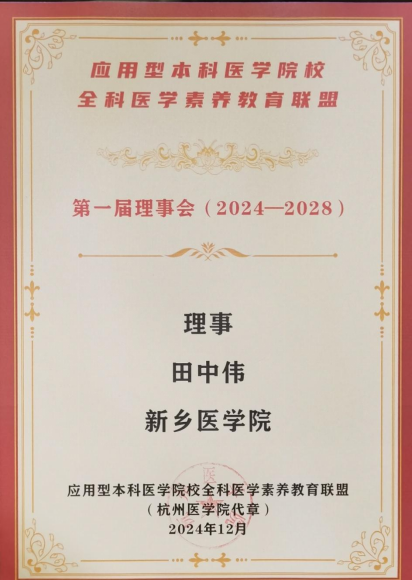 会议期间,应用型本科医学院校全科医学素养教育联盟正式成立。田中伟入选应用型本科医学院校全科医学素养教育联盟第一届理事会理事。