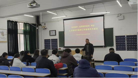会上,学院党总支书记、院长田中伟介绍了召开此次会议的目的,综合办公室主任万勇敢就培养方案、培养目标、毕业要求、学制、总体学分、主干学科、核心课程、学分分配、课程设置等方面展开详细讲解,并讲述了相较于普通临床专业有所改动的详细原因。参会人员结合关心的问题对培养方案表达了个人见解,并与学院人员进行了良好的沟通。