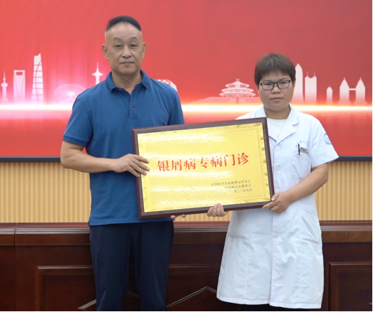 随后举行了授牌仪式,田中伟、陆丽红分别代表中华医学会皮肤性病学分会银屑病专业委员会、国家眼部疾病临床医学研究中心和北京白求恩公益基金会向该院皮肤科、眼科授予“银屑病专病门诊”和“国家级光明中心”牌匾。