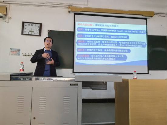 在讲座中,杜思远首先介绍了全科医生在世界各国的培养模式和特点,让学生对全科医生有了一个初步的了解。他指出,尽管世界各国针对全科医生的培养模式不同,但核心目标都是培养具备全面医疗知识和技能的全科医学人才,以满足基层医疗服务的需求。在全球范围内,全科医学教育正逐步得到重视,各国都在努力地完善培养体系,以提升全科医生的素质、能力和职业前景。同时,他也从自身基层的工作经历告诉大家,要做好一名合格的全科医生,首先要有仁心大爱、博医济世的胸怀,始终把基层患者的生命安全和健康放在第一位,关注他们的需求,用心去关爱每一个患者。第二,要有求真问学、探索实践的勇气。在临床实践中要善于发现,勤于总结,坚持把学术研究融入到临床实践中,积极探索和创新,提升全科医学的诊疗水平。第三,要有热心科普、坚持公益的理念。全科医生应树立预防为主、治疗为辅的观念,不仅要在基层提供优质的医疗服务,还要承担传播全科医学健康知识,传播健康理念的社会责任,积极提升人民群众的健康素养。最后,他鼓励我院学子要珍惜在大学期间的宝贵时光,不断充实自己,提升专业水平和综合素质,在学习和实践中不断积累经验,锻炼自己的临床技能和应对突发事件的能力。同时,也要多去关注全科医学领域的新知识、新动态,在未来的职业生涯中能够养成将最新的医疗知识和技术应用于临床实践的本领,为国家的基层卫生事业夯实根基。