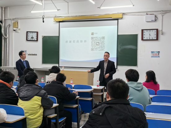 本网讯(沈承亮、袁永庆/文 万勇敢、袁永庆/图)为帮助我院学生深入了解国内外全科医学发展趋势及临床医学(定向)专业职业前景,充分调动大学期间学习的主观能动性,提前做好学业和职业规划。1月6日,我院在博济楼2106教室举办《从全科医学基层实践看全科医生未来职业发展》专题讲座,我校2015级全科医学专业优秀校友、首届全国高校毕业生基层就业卓越奖、河南省首届“十佳订单定向全科医生”获得者、南阳市宛城区汉冢乡卫生院党支部书记、院长杜思远应邀主讲。我院党总支书记、院长田中伟、党总支副书记穆永慧出席了本次讲座,综合办公室主任万勇敢、辅导员袁永庆及2023级临床医学(定向)专业本科生参加了本次讲座。
