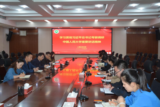 4月29日,人事处党支部全体党员在勤政楼六楼会议室召开学习贯彻习近平总书记考察调研中国人民大学重要讲话精神会议。校党委委员、副校长朱武凌以普通党员身份参加学习会议。会议由支部书记崔金奇同志主持,与会党员共同学习,并发表个人心得体会。