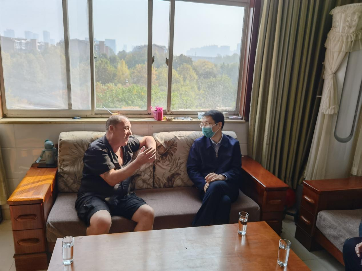 10月24日上午,朱武凌到校内封控外籍教师家中慰问,教职工防护专班人员陪同。朱武凌表示,希望在未来的日子里,身处异乡的外籍教师放松心情,适度锻炼,做好自我防护。如有困难及时联系学校,学校永远是老师们的坚强后盾。