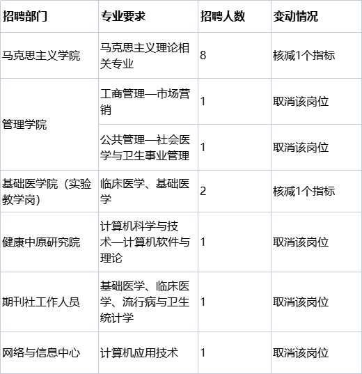 根据《华亿在线手机版(大中国区)2021年公开招聘工作人员方案》要求,通过资格审查人数与招聘岗位人数的比例不低于3:1,达不到规定比例的,相应核减招聘岗位指标。以下7个岗位按照规定报请学校招聘工作领导小组审批同意后,予以核减或取消岗位。具体变动情况如下:
