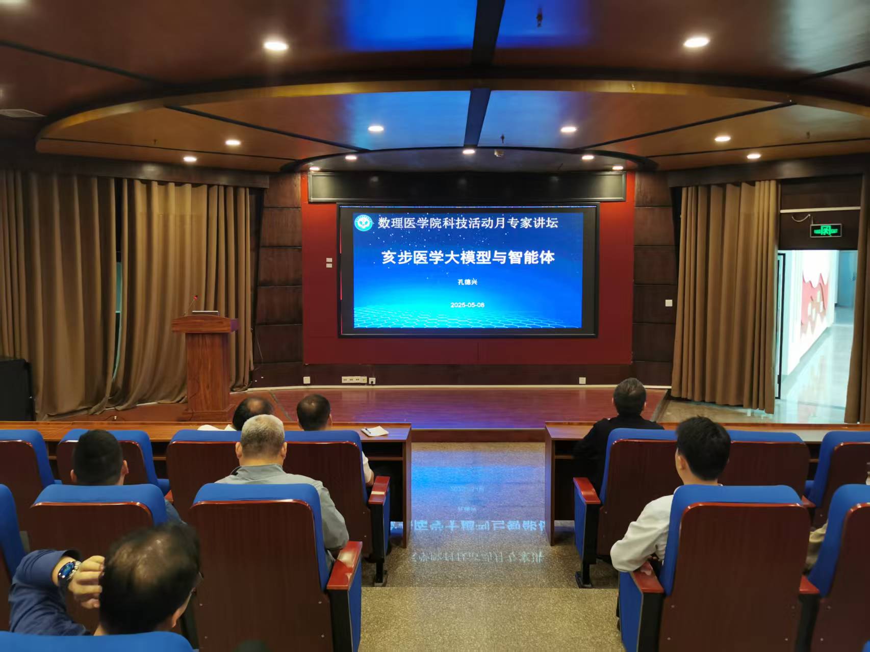 孔德兴教授做了题为“亥步医学大模型与智能体”的主题报告。孔教授首先向大家介绍了数理医学领域发展现状,随后详细阐述了团队研发的亥步医学大模型的技术理论和应用场景。孔教授的分享让与会师生充分认识到大模型和智能体在医疗领域的广阔应用前景。会后,林俊堂校长与孔教授就亥步医学大模型与我校需求的结合以及未来推广进行了深入交流。