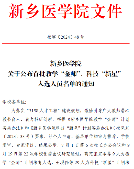 近日,我校公布了首批教学“金师”、科技“新星”计划入选人员名单,我院赵宗亚副教授入选科技“新星”计划(第三层次),并获得科研经费支持。