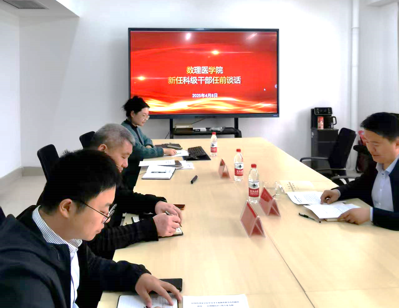 本网讯(图文/赵宗亚)4月8日下午,我院在勤政楼524会议室举行新提拔科级干部任前谈话会议,我院院长孔德兴、党政办公室主任赵宗亚、智能医学工程系主任于勉、新提拔教学管理与专业建设办公室主任解琳艳、研究生与科研管理办公室主任周学志参会,校党委组织部副部长、我院党委负责人齐明超主持会议。