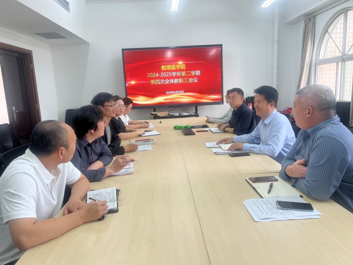 本网讯(图文/赵宗亚)4月29日下午,我院在勤政楼5楼524会议室举行2024-2025学年第二学期第四次全体教职工会议,全院教职工参加会议。校党委组织部副部长、我院党委负责人齐明超主持会议。