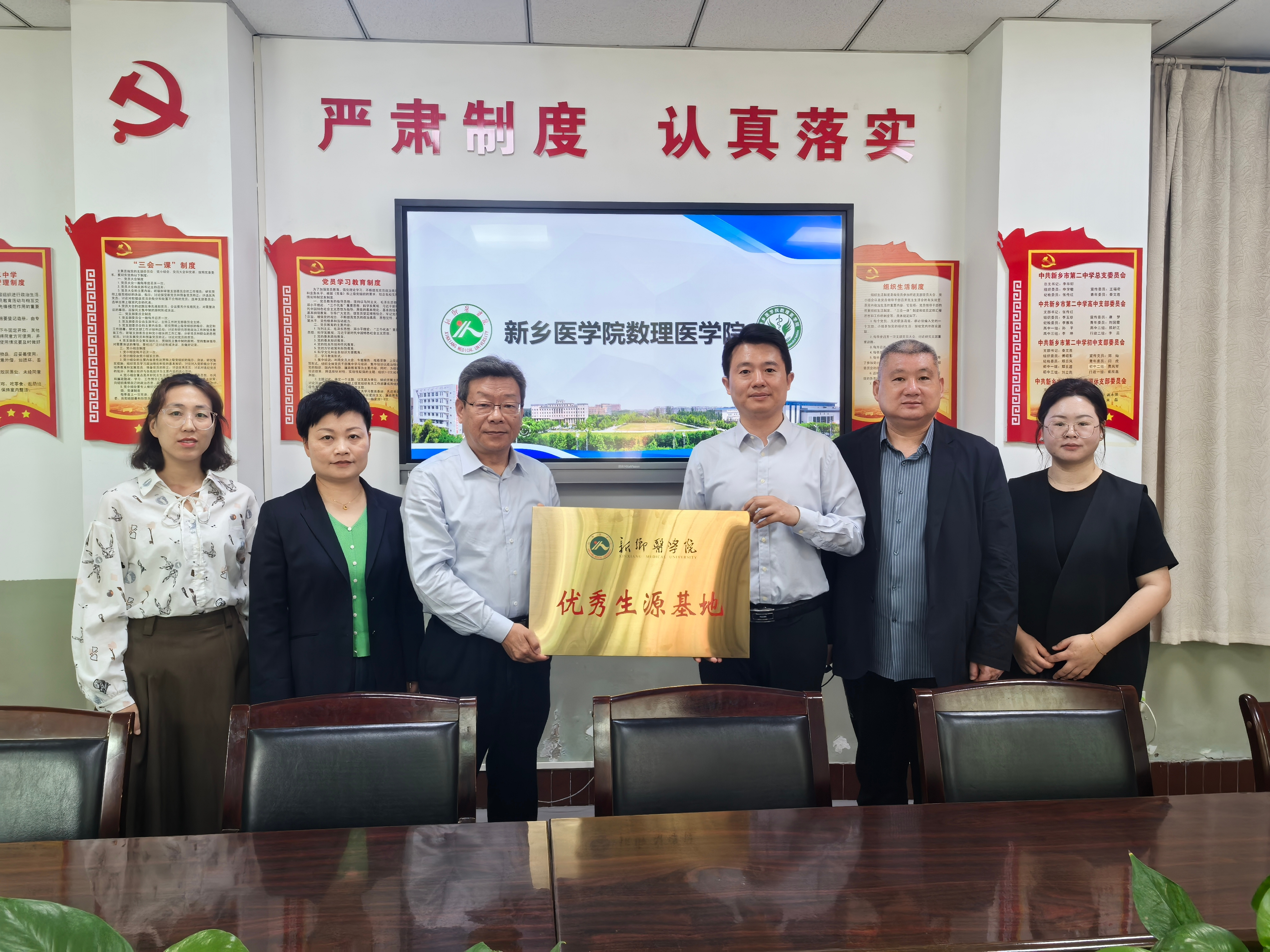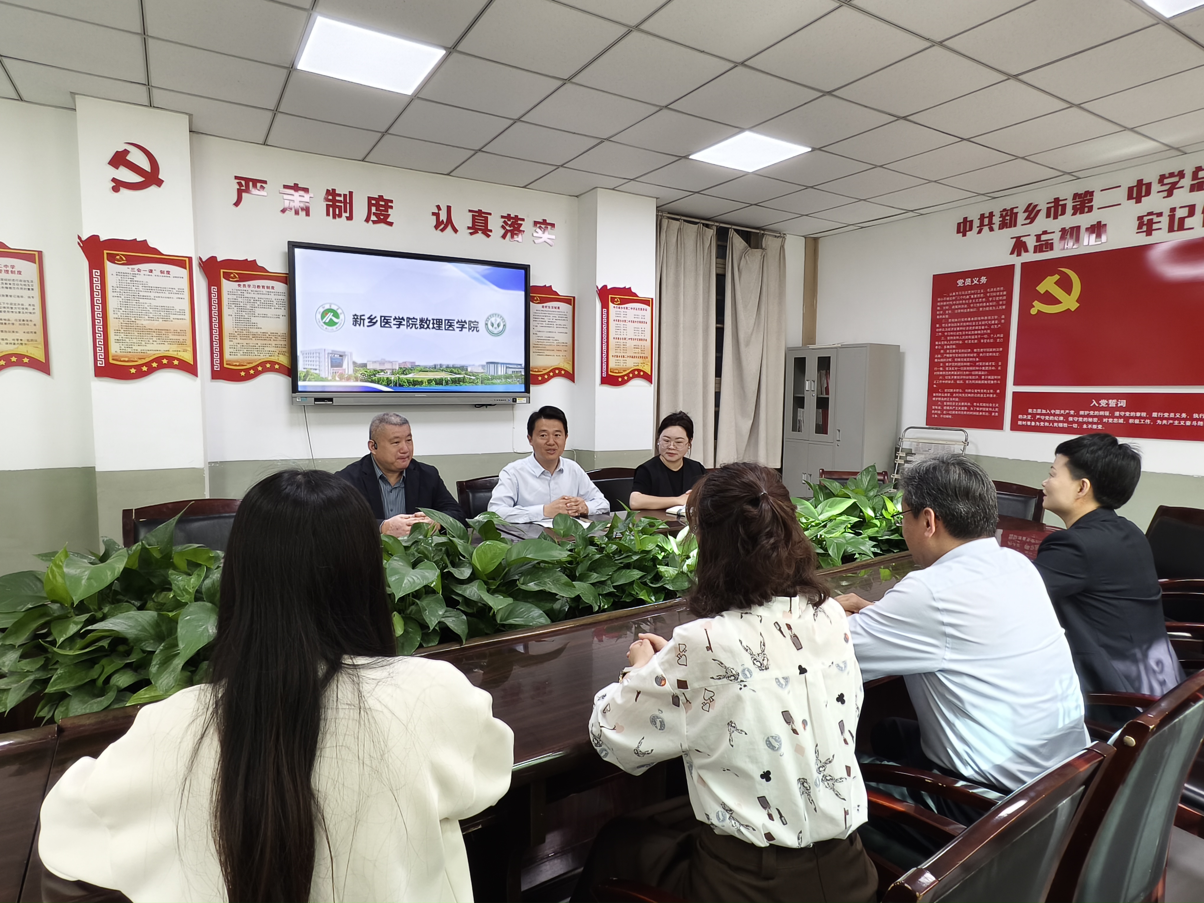 本网讯(图文/解琳艳)4月30日上午,我院代表学校与新乡市第二中学(以下简称“新乡二中”)签订优质生源基地合作协议,并举行授牌仪式。学校党委组织部副部长、学院党委负责人齐明超,教学管理与专业建设办公室主任解琳艳,智能医学工程系主任于勉,新乡二中党委书记、校长李华轩,副校长申学敏、牛小曼,以及教师发展中心主任李雅玮等出席本次会议。