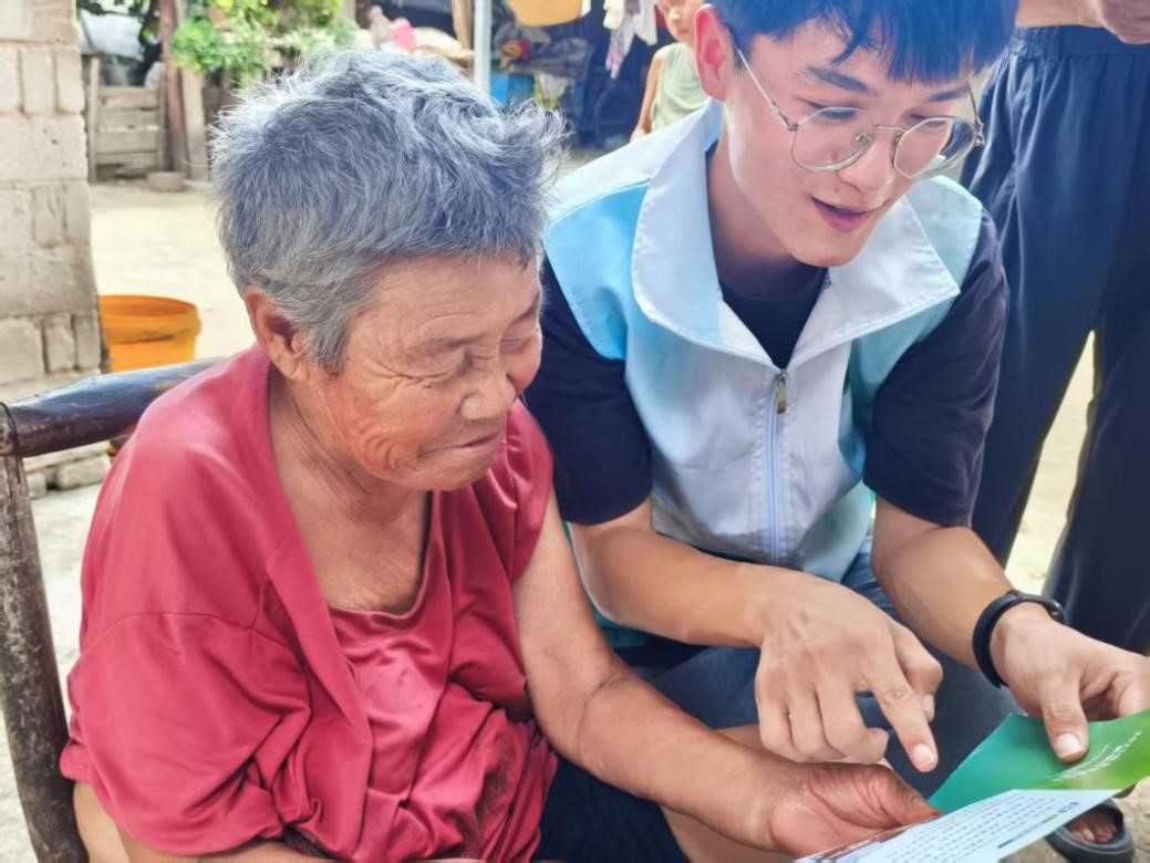 七月中旬,实践团成员在杜岗村村委会与村干部展开深入座谈,了解到村里老人因普通话不好,在就医、购物时常遇到麻烦,结合村委会提供的信息,针对“就医”“购物”等常见场景制定实用短语特色推广方案,用“接地气”的语言将普通话教学与医疗普及深度绑定。志愿者们带着提前准备的教学卡片和生活物资,模拟就医、采买情景,重点教学医疗知识、症状讲述和购物用语,纠正老人们的发音,用身边事物举例练习,让老人学得更明白。