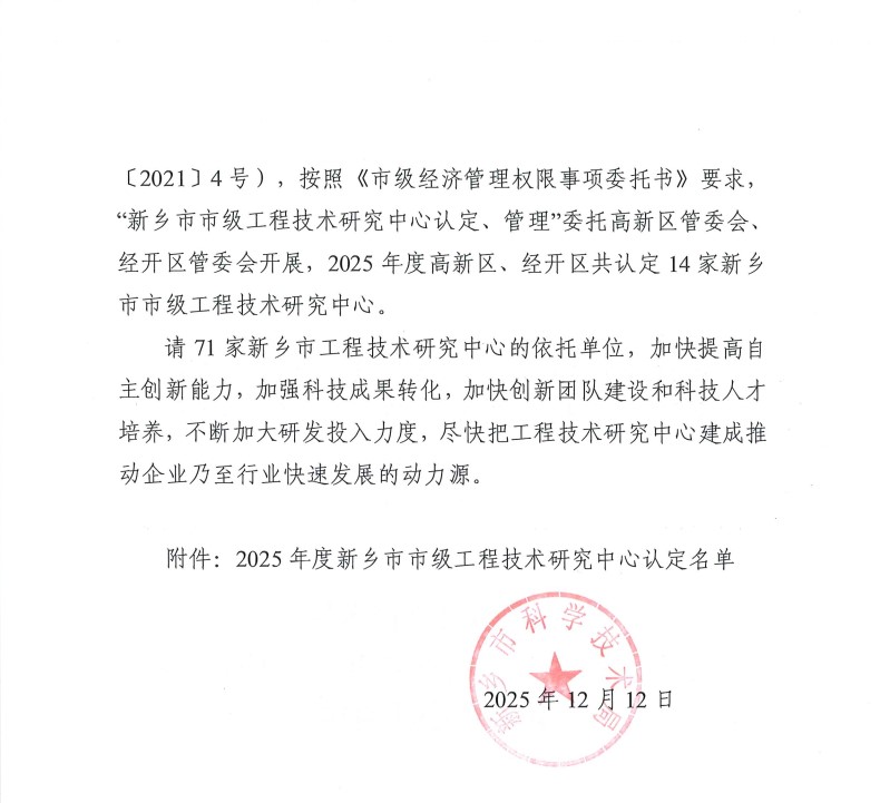 本网讯(图文/赵宗亚)12月12日,新乡市科学技术局公布了《新乡市科技局关于认定2025年度新乡市市级工程技术研究中心的通知》,我院作为牵头单位,联合我校医学工程学院和交浦科技(深圳)有限公司申报的“新乡市智能脑成像与脑调控工程技术研究中心”顺利获批,中心主任为我院赵宗亚副教授。这是我院建院以来获批的第一个市级工程技术研究中心,中心旨在面向精神神经疾病迫切的诊疗临床需求,探索多模态脑成像、人工智能和脑调控等新技术,为相关精神疾病的有效治疗干预与康复方案的制定提供理论基础及技术支持,构建区域内精神疾病智能诊断与干预的创新高地。
