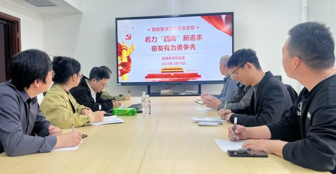 本网讯(图文/赵宗亚)3月19日,智能医学工程系党支部以“着力‘四高’新追求,奋发有为勇争先”为主题开展党日活动。全体党员共同学习了习近平总书记在全国两会及二十届三中全会的重要讲话精神,省第十四届人大会议“奋力谱写中国式现代化河南篇章”目标和学校2025年工作会议精神,提出要以“一支部一品牌”为抓手,探索“党建+智慧医疗”融合路径,通过医学教育与科技创新双轮驱动破解基层健康服务难点,将智能医学工程专业做出特色、打造一流。