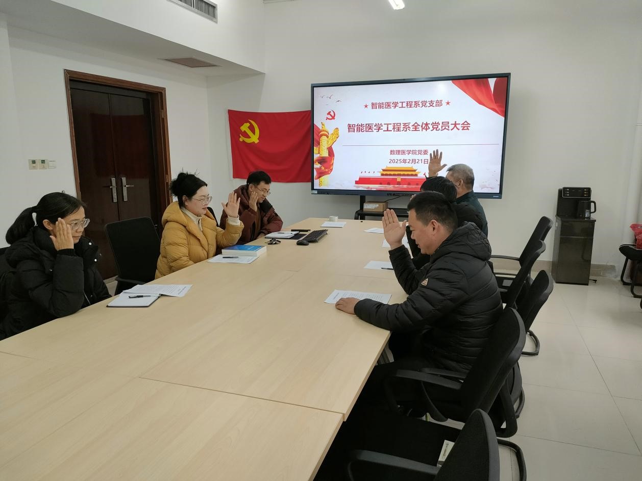 本网讯(图文/赵宗亚)为加强党的建设,落实学校党建引领基层高效能治理工作推进会议精神,2月21日,按照学院党委工作安排,智能医学工程系全体党员召开党员大会,成立智能医学工程系党支部,并选举产生了第一届支部委员会。