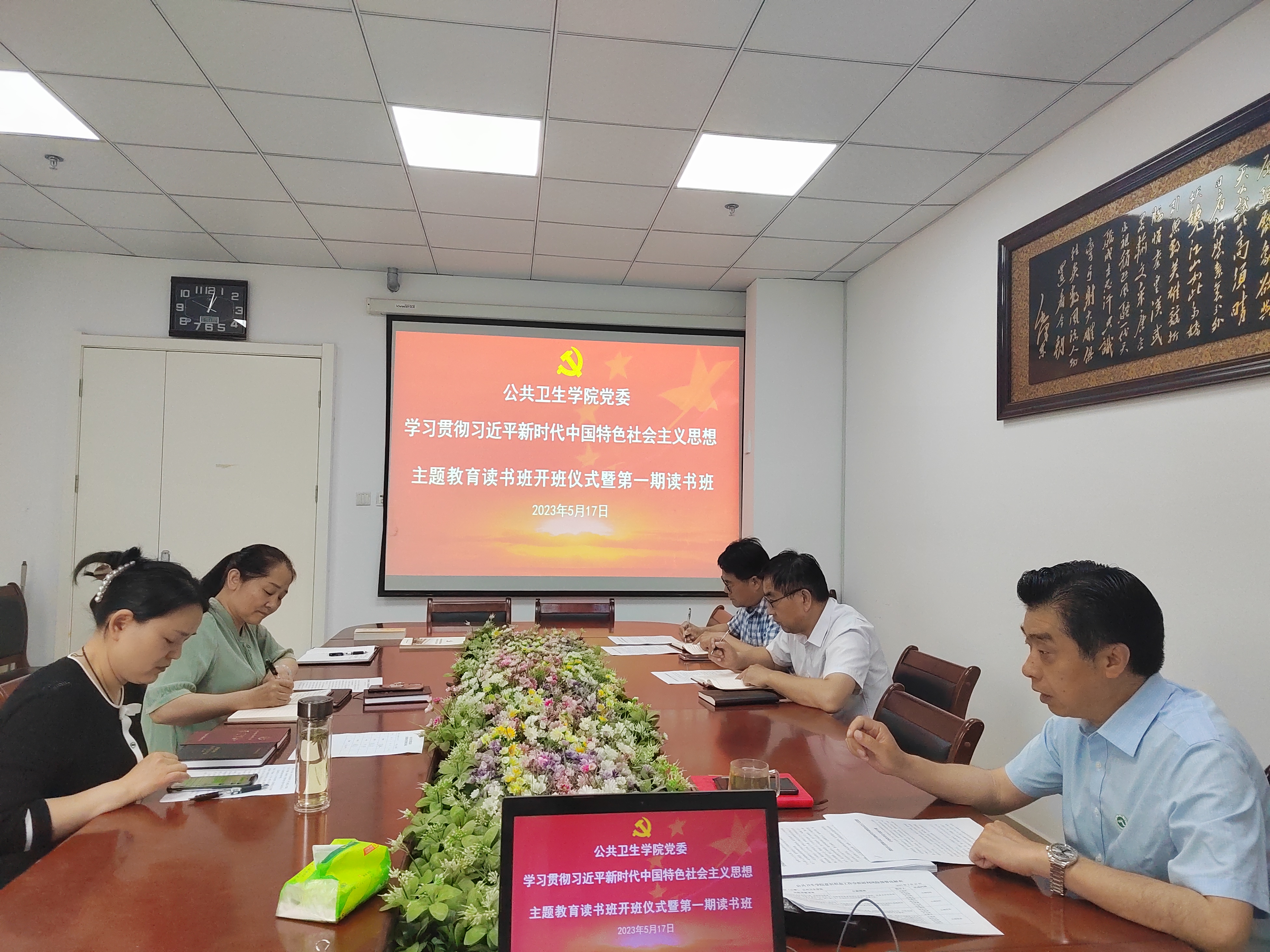 为深入学习贯彻习近平新时代中国特色社会主义思想,5月17日下午,公共卫生学院党委在学院会议室举行主题教育读书班开班仪式暨第一期读书班,学院理论学习中心组成员参会,会议由党委书记朱森林主持。
