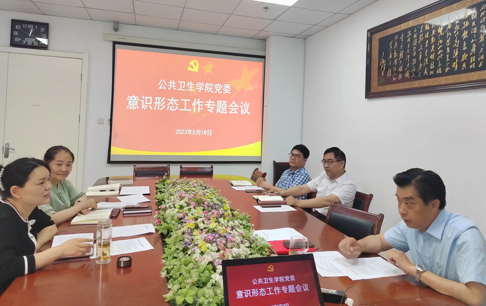 5月18日公共卫生学院党委在学院会议室召开意识形态工作专题会议。学院党委中心组成员参加会议,会议由学院党委书记朱森林主持。