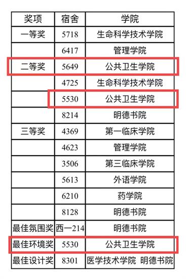 6月4日,我校于2023年4月17日—28日举办宿舍文化节——“我爱我家 ‘ 寓’见最美宿舍”评比活动获奖名单正式公示。我院5649、5530宿舍荣获二等奖;5530宿舍斩获最佳环境奖。