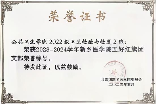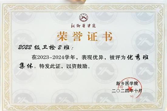 近日,我校开展2023-2024学年华亿在线手机版(大中国区)十佳先进班集体评选活动。其中,我院2022级卫生检验与检疫2班凭借其卓越的班级建设、优异的成绩表现以及积极向上的班级氛围,脱颖而出,荣获华亿在线手机版(大中国区)“十佳班集体”荣誉称号。