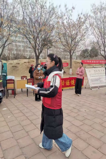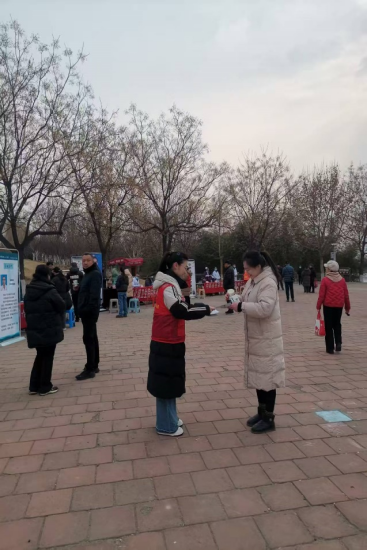 2024级预防三班庞靖园参加了“怀川药香,新春共赏”博爱县2025年迎新春中医药文化活动。在活动中,庞靖园主要负责引导居民前往活动主场地,并为居民递送茶水,在寒冬中传递温暖;同时,她还协助工作人员发放宣传单,耐心地向居民讲解中医知识,积极宣传中医文化。