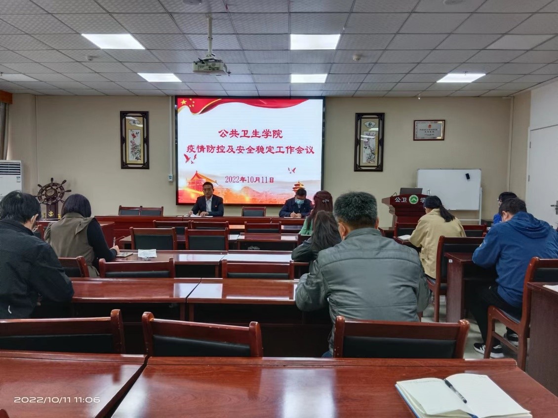 10月11日上午,学院在学术报告厅召开“疫情防控暨安全稳定工作会议”,学院党政领导班子全体成员、各科室(专业)负责人参加会议,会议由学院党委书记崔新宇主持。