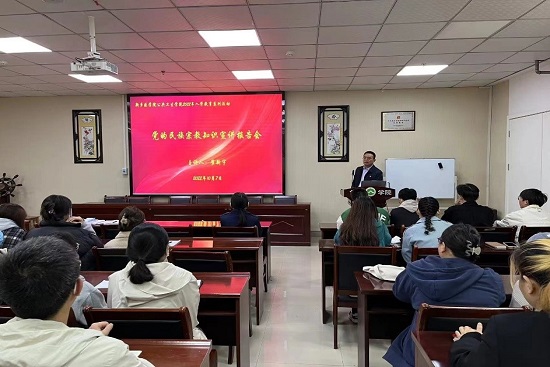 10月7日上午,我院在公卫报告厅举办“研究生新生入学教育系列活动--党的民族宗教政策法规知识宣讲报告会”。本次活动由学院党委书记崔新宇主讲,副院长范秉琳主持,全体2022级研究生参加了此次活动。