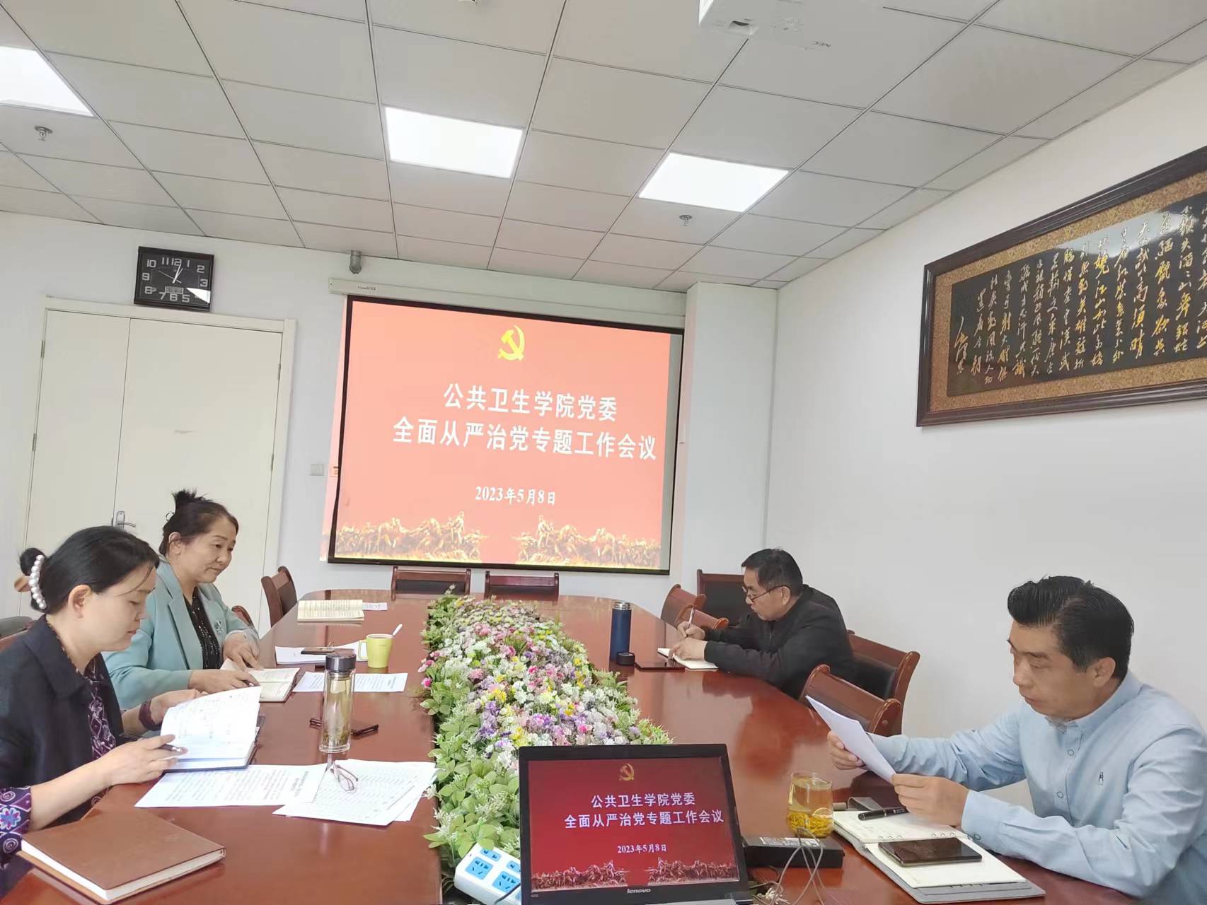 5月8日,公共卫生学院在会议室召开2023年全面从严治党专题会议,学院党委中心组成员参加会议,会议由学院党委负责人主持。