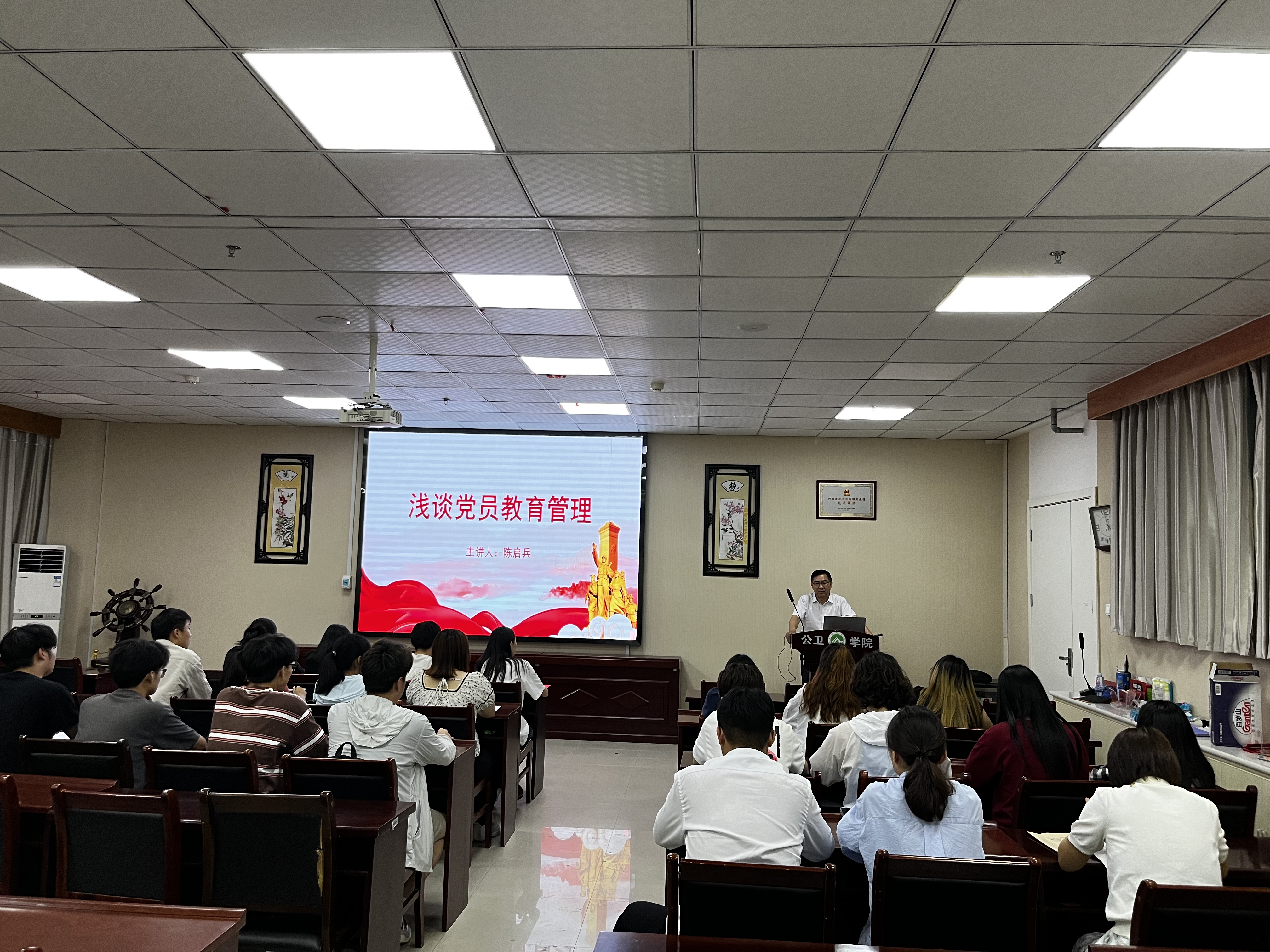 陈启兵围绕党员教育管理,结合学生党员实际,从牢记党员身份,增强党员意识;坚定理想信念,不忘初心使命;发挥模范作用,永葆先进本色三个方面进行了阐述。(图/杨立强 文/刘甲)