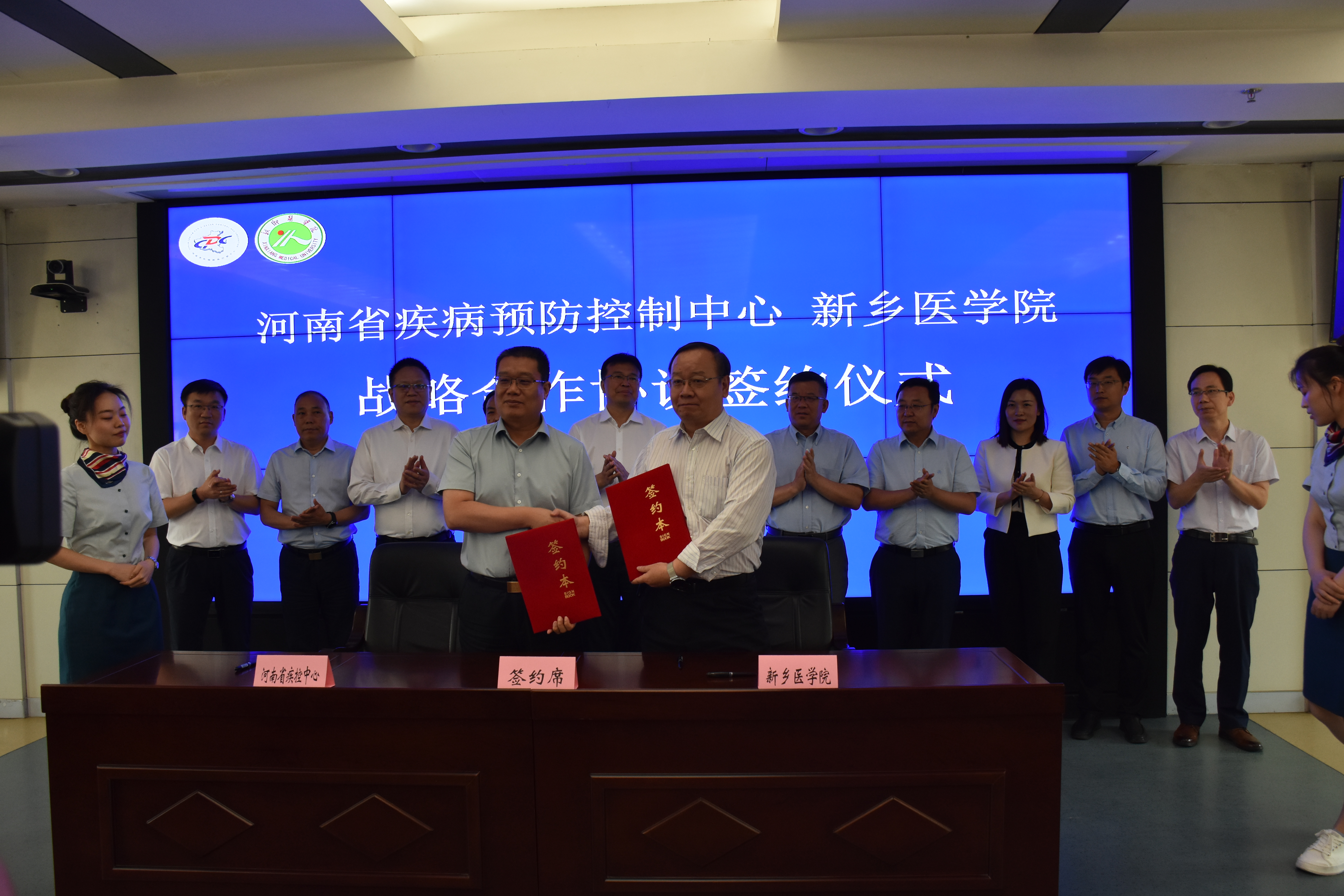 7月5日上午,我校和省疾病预防控制中心(CDC)在郑州市河南省CDC举行战略合作协议签约仪式。省卫健委副主任、省CDC党委书记郭万申、中心主任郝义彬、中心副主任韩志伟及各研究所所长和科室主任,我校党委委员、副校长王辉、公共卫生学院院长吴卫东以及校相关部门负责人和部分教师代表出席了签约仪式。会议由韩志伟主持。