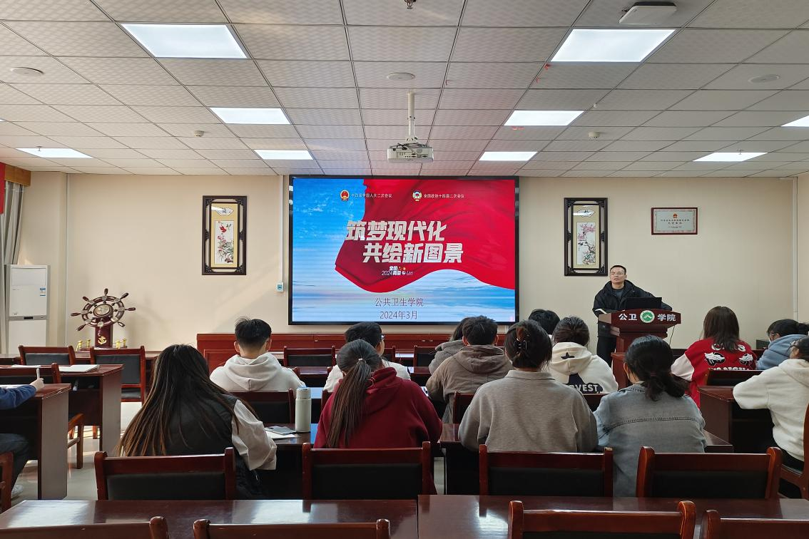 第十四届全国人民代表大会第二次会议和中国人民政治协商会议第十四届全国委员会第二次会议分别于3月5日、3月4日在北京人民大会堂隆重开幕。为了进一步深入学习两会精神,公共卫生学院党员通过“学习强国”APP学习全国两会精神,同时,充分利用微信公众号、微信工作群、电子屏等,转发播报全国两会相关资讯,在全院上下切实营造学习全国两会精神的浓厚氛围。