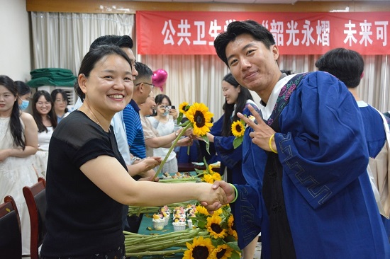 欢送会上,院长吴卫东、学院党委书记朱森林分别向毕业生们送上真挚的祝贺和美好的祝愿。吴院长首先祝贺大家顺利获得硕士学位,并对大家在校期间的付出和努力给予了充分的肯定;同时,他也希望毕业生们能够继续保持公卫人的初心和使命;希望大家毕业后多和学院保持联系,常“回家”看看。朱书记希冀大家走上工作岗位后仍奋发拼搏、笃行不怠来应对快节奏社会发展对不同人才的需求、应对百年未有之大变局的潮流,并鼓励同学们关注生活,为社会、家庭多做贡献,最后祝同学们工作顺利、前程似锦、阖家欢乐。
