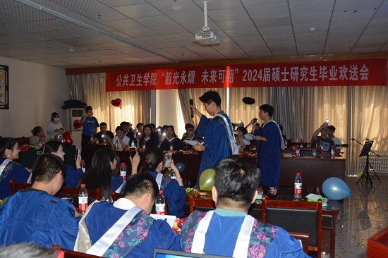 满载荣光启新程,坚定信念向前行。6月18日下午,公共卫生学院“韶光永熠,未来可期”2024届硕士研究生毕业欢送会在学术报告厅隆重举行。学院党委书记朱森林、院长吴卫东等学院领导和老师及2024届全体毕业研究生参加了此次欢送会。欢送会由王艺瑾、苏亚光主持。