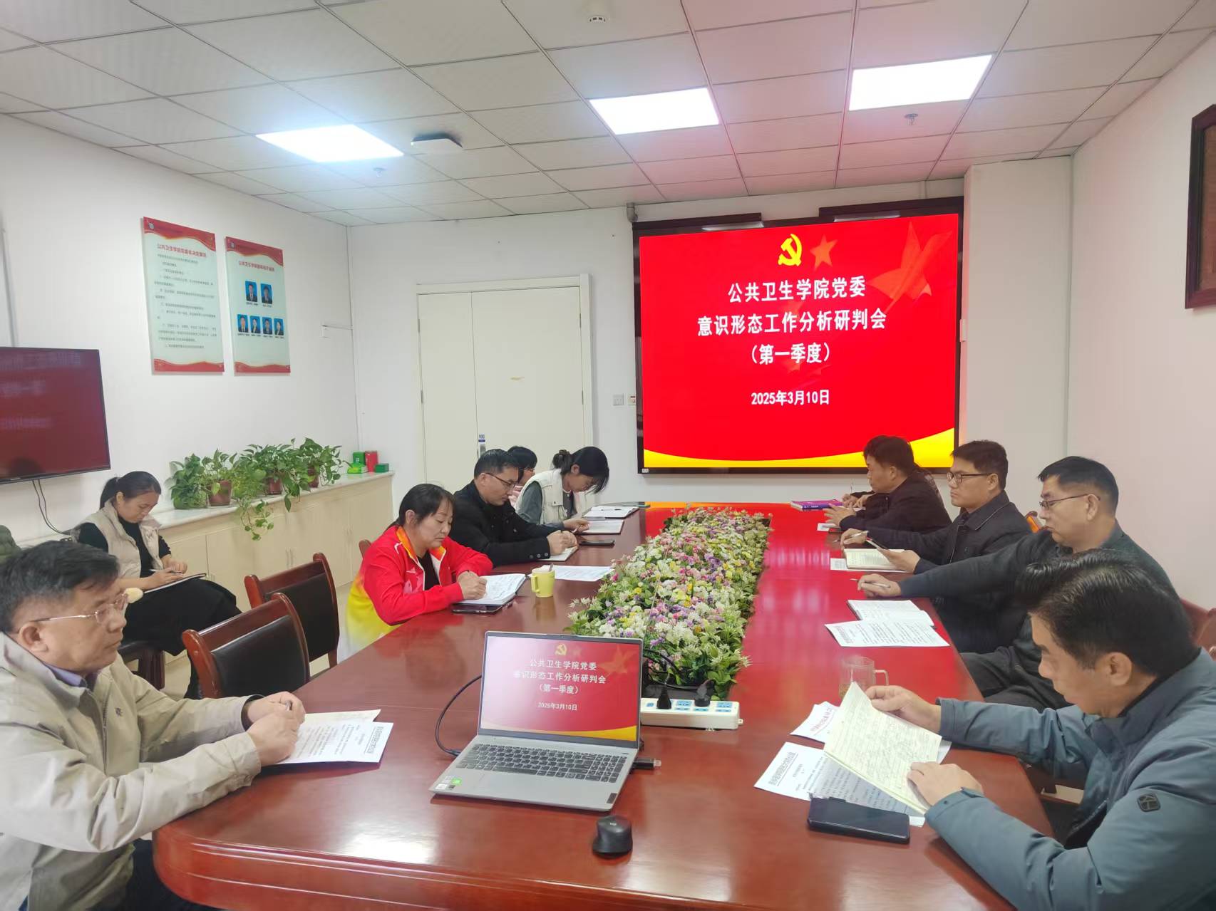 3月10日下午,学院党委在会议室召开2025年第一季度意识形态分析研判会,会议由党委书记朱森林主持,学院领导班子、科室负责人、各党支部书记参加会议。