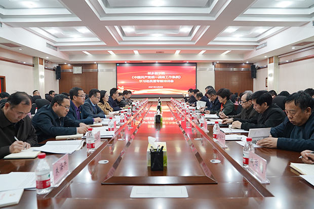 为深入学习宣传《中国共产党统一战线工作条例》,全面准确学习领会党的统一战线理论方针政策,4月8日上午,我校在办公楼六楼会议室召开《中国共产党统一战线工作条例》专题宣讲培训会。校党委副书记陈清江出席会议并作专题培训。学校统战工作领导小组成员单位负责人,各基层党委、党总支负责人及党委统战部全体成员参加会议。