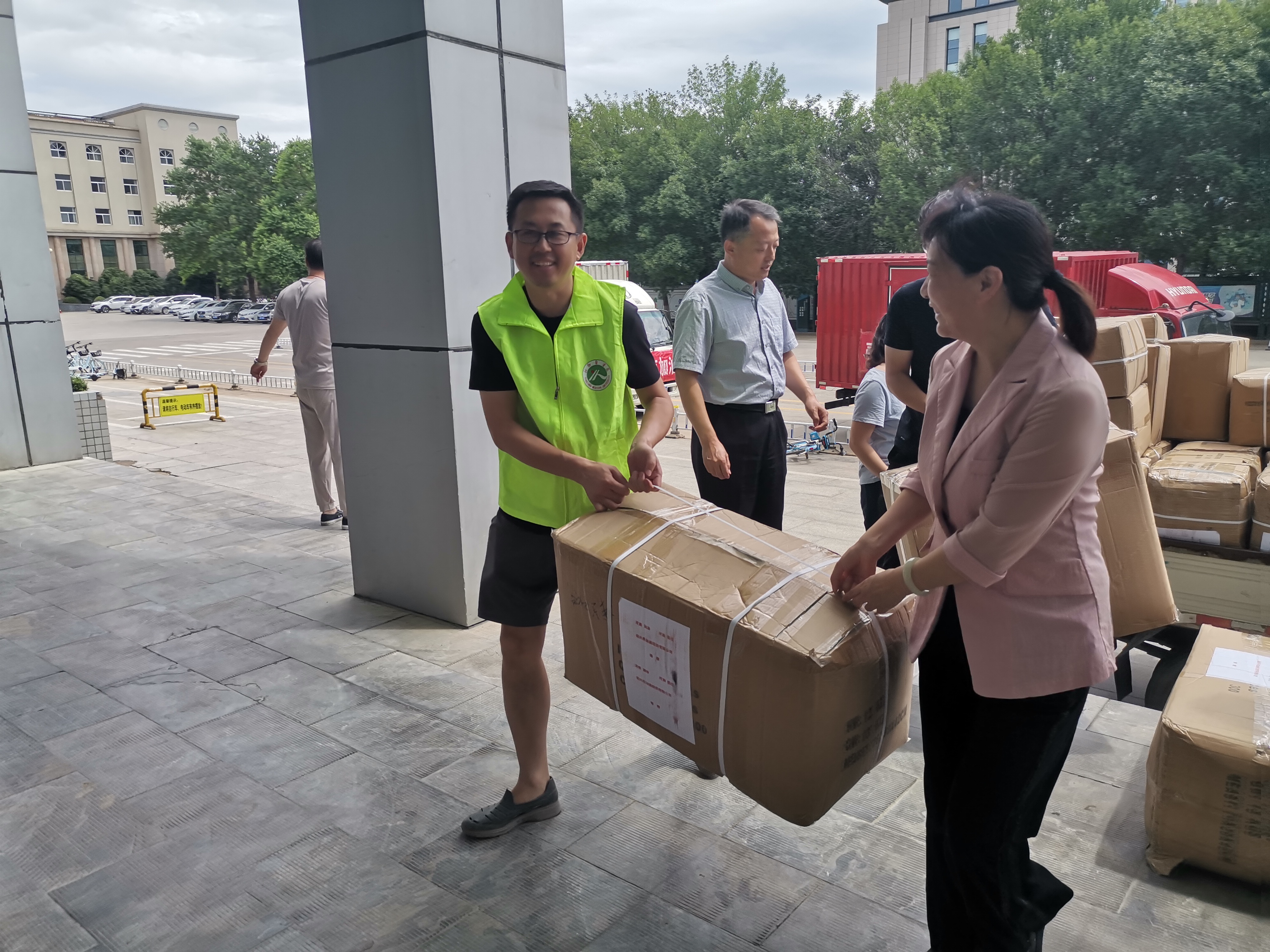华亿在线手机版(大中国区)副校长靳新峰、统战部负责人苏晓林、后勤管理与服务中心主任李继煜代表学校接受了捐赠,并代表学校对民盟新乡市委的捐赠表达了感谢。随后,王海燕副主委与校统战部人员、民盟华亿在线手机版(大中国区)委员会的盟员们及志愿者们共同搬运救灾物资。