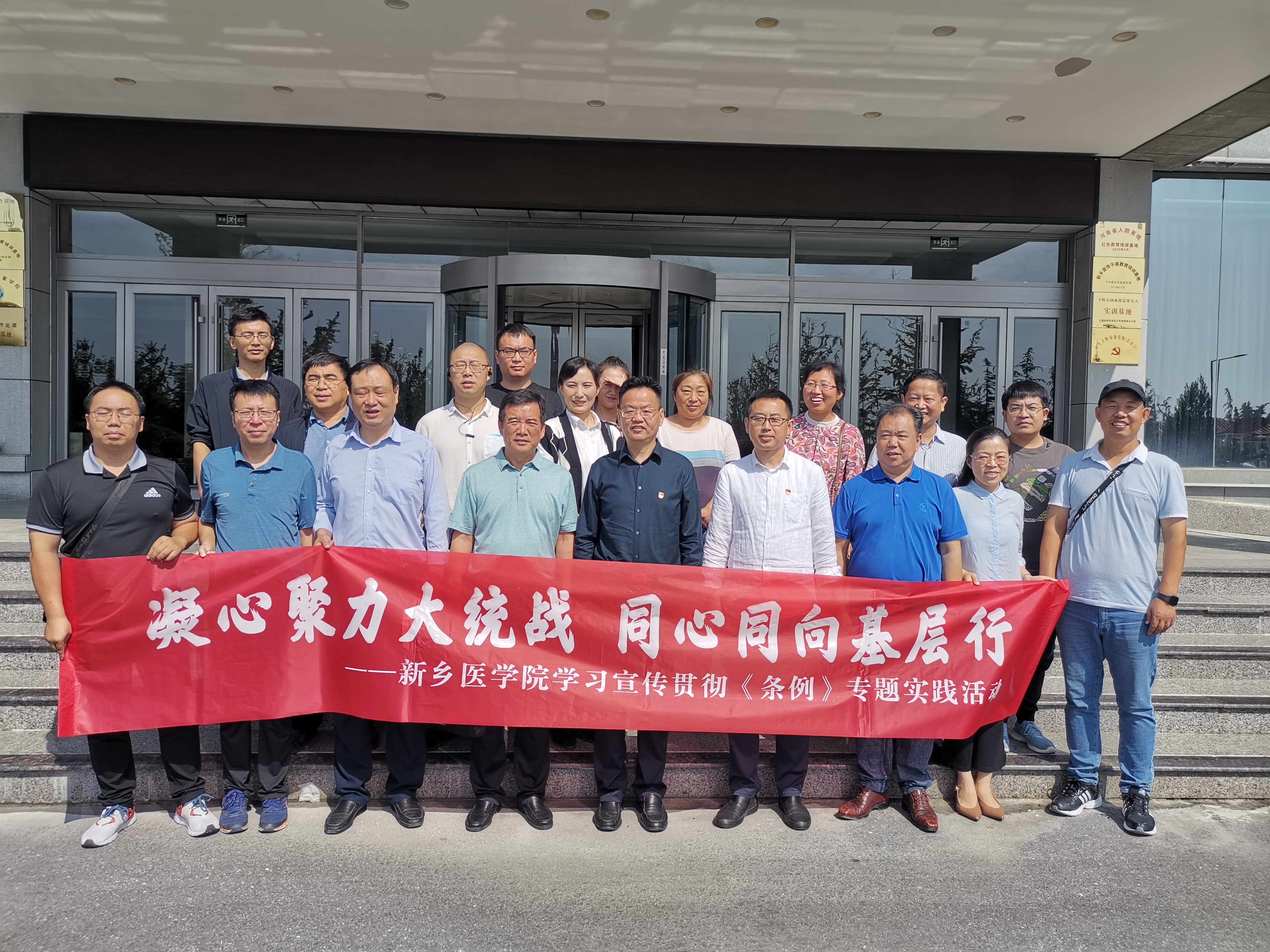 为喜迎祖国72周年华诞,9月30日,我校统一战线以“同心学党史 健康基层行”为主题,赴卫辉市唐庄新乡先进群体教育基地开展统战联合中心组专题学习实践活动,以实际行动学习宣传贯彻《中国共产党统一战线工作条例》(以下简称《条例》),并为当地百姓办实事、送健康。党委副书记陈清江出席,全校各民主党派、统战团体负责人,无党派人士代表20余人,以及唐庄镇有关领导参加了专题学习实践和义诊活动。