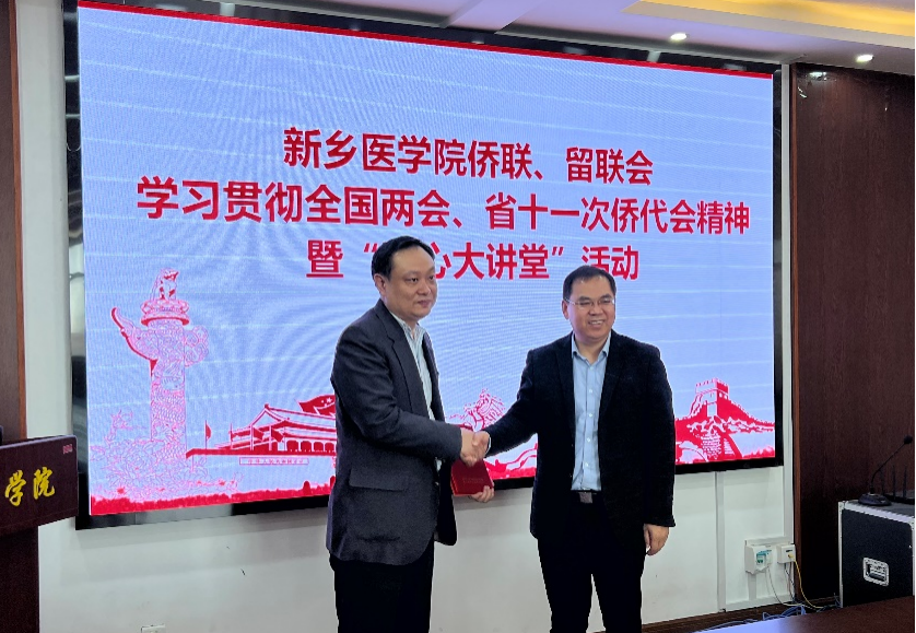 与会者重点学习领会了省第十一次归侨侨眷代表大会会议精神,省侨联常务委员、学校留联会会长、侨联副主席林俊堂教授为“河南省侨界贡献奖”个人奖获得者王现伟教授颁发荣誉证书和光荣册。通过学习、研讨,大家表示将更加广泛地凝聚侨心、汇聚侨智,带动我校侨界人士和留学人员以省十一届侨代会精神为引领,高举旗帜、凝心聚力、实干担当,为实现学校各项重点工作奋斗目标和建设高水平现代化医科大学贡献侨界力量、展现侨界风采。