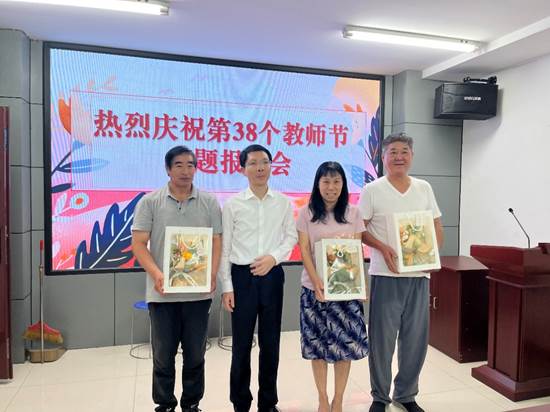 会上,朱武凌副校长一行领导为体育学院从教20年以上教师献花,并向全体教师表达节日慰问和良好祝福。希望体育教师继续发扬热爱教育事业、勇挑工作重担的工作精神,做学生为学、为事、为人的大先生,促进学生成长为全面发展的人。