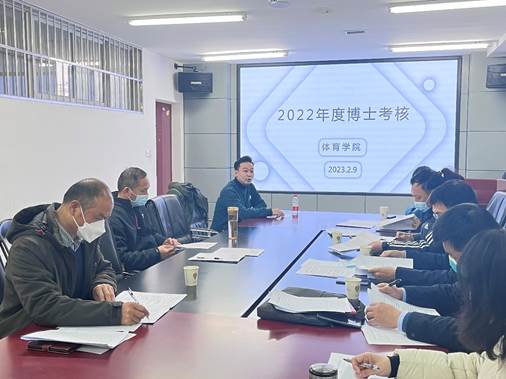 2023年2月9日上午,体育学院召开2022年度博士考核工作会议,专家组成员有河南科技学院体育学院书记徐现锋,新乡学院体育学院副院长王海燕,河南工学院体育部主任彭昆,医学院学科建设办公室副主任王彦杰,体育学院副书记陈燕、副院长许胜利、科研管理与学科建设办公室凌文杰组成。任昊博士、阳红林博士作2022年度工作汇报。