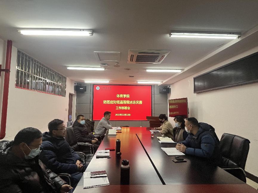 为全力做好近期防范应对低温雨雪冰冻灾害等工作,确保师生安全稳定。12月13日下午五点,体育学院在体育馆会议室召开防范应对低温雨雪冰冻灾害工作部署会。学院全体科级以上干部参加会议,会议由体育学院书记李轶主持。