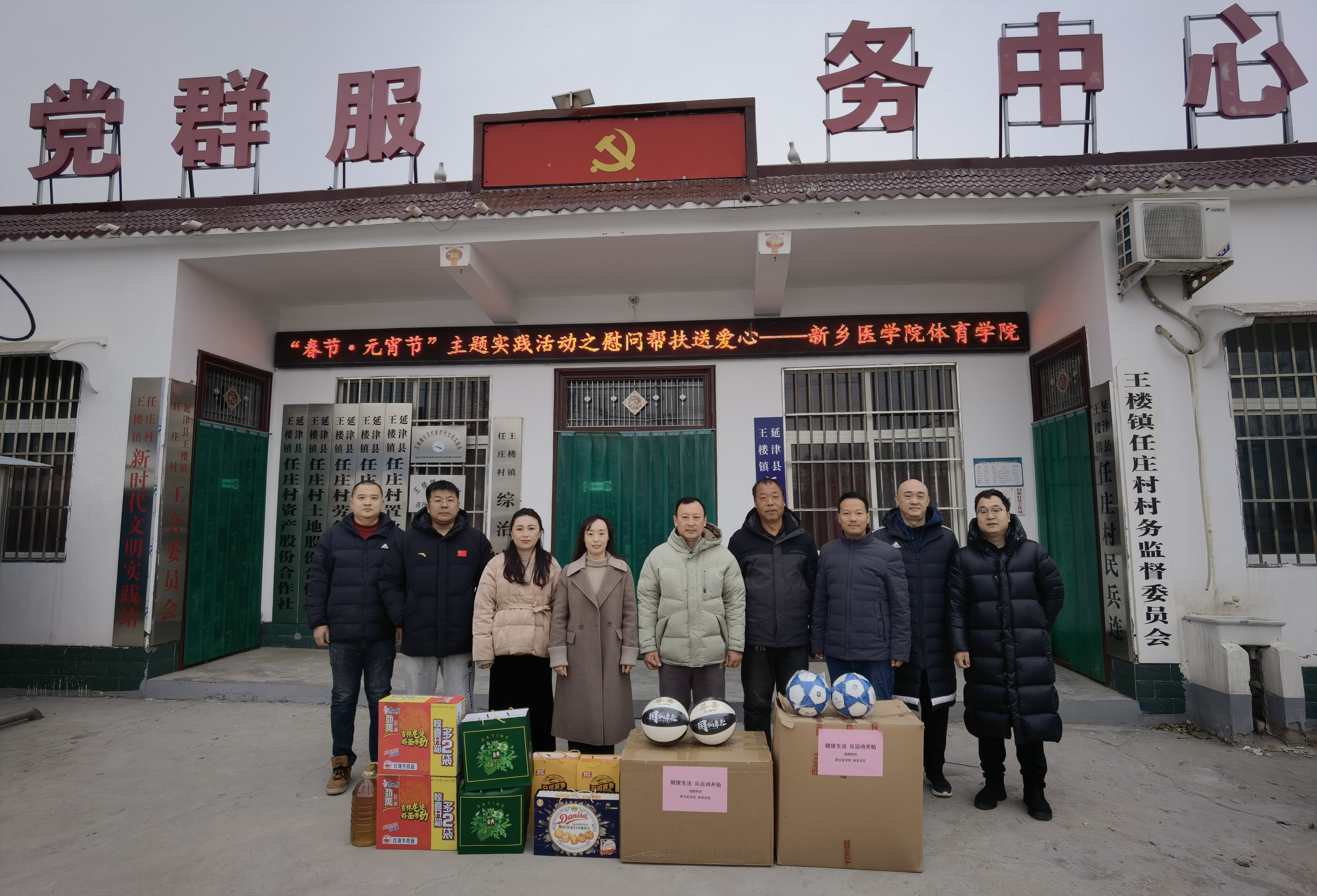 佳节将至,岁寒情暖。为落实学校党委相关工作要求,体育学院在元宵节到来之际,开展“春节.元宵节”主题实践活动。2月19日上午,学院书记李轶、副院长许胜利、学院党政办等各科室负责人一行来到延津县王楼镇任庄村开展慰问帮扶送爱心活动。