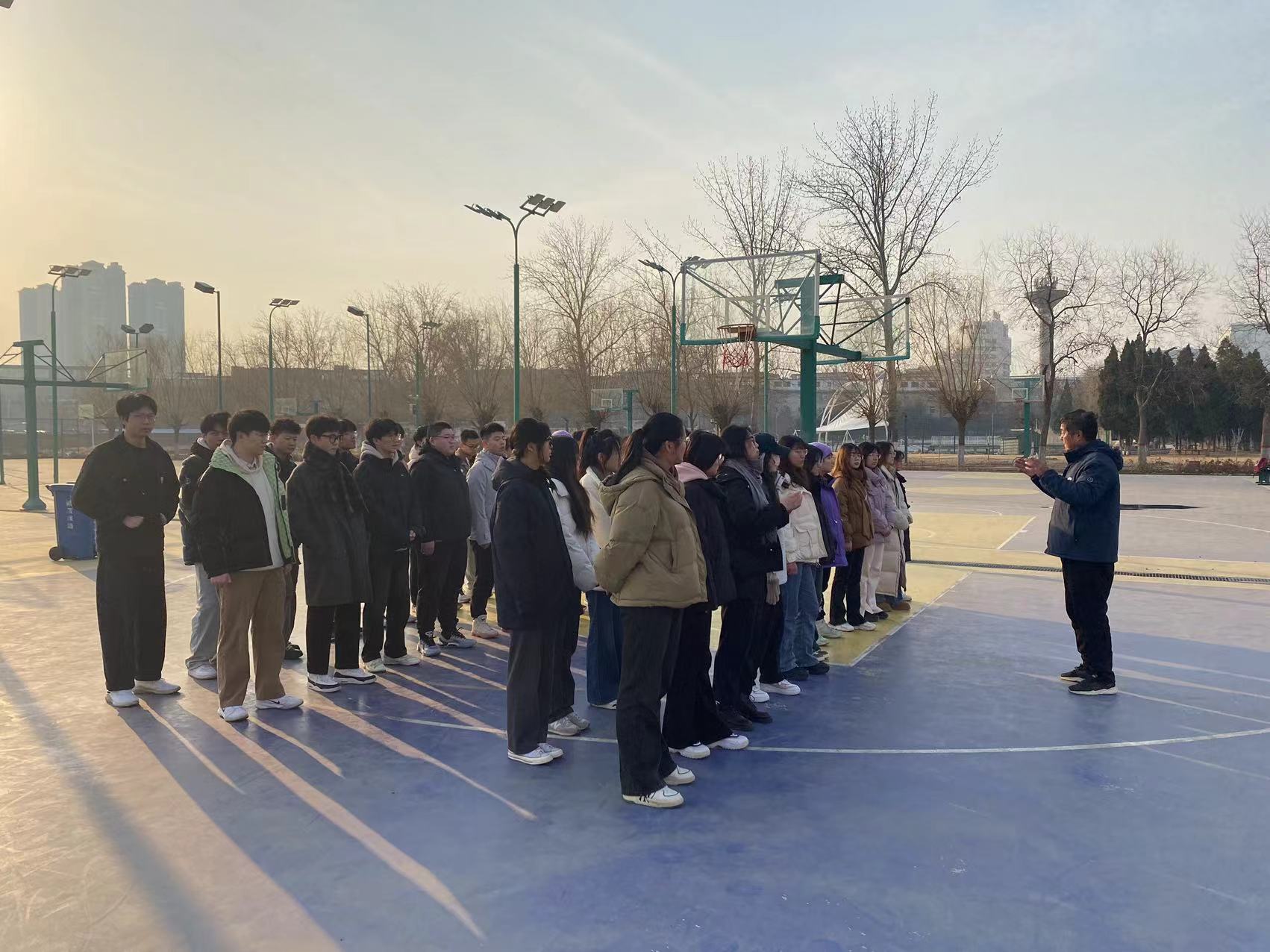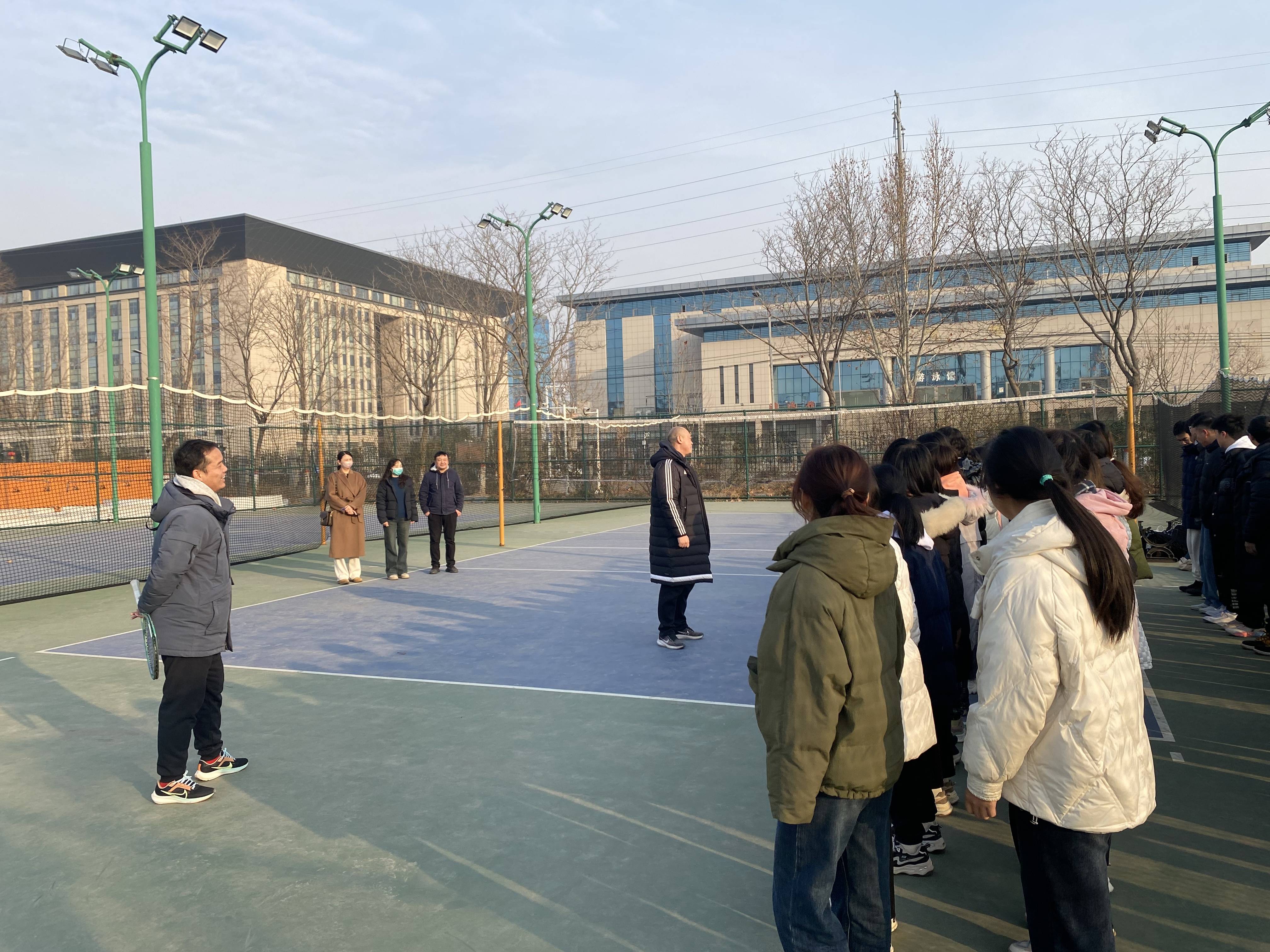 据悉,因学校南校区田径场、网球场正在维修中,体育课程更换场地,暂时安排在南校区排球场、篮球场进行,经学院统筹安排,克服场地困难,确保教学平稳运行。