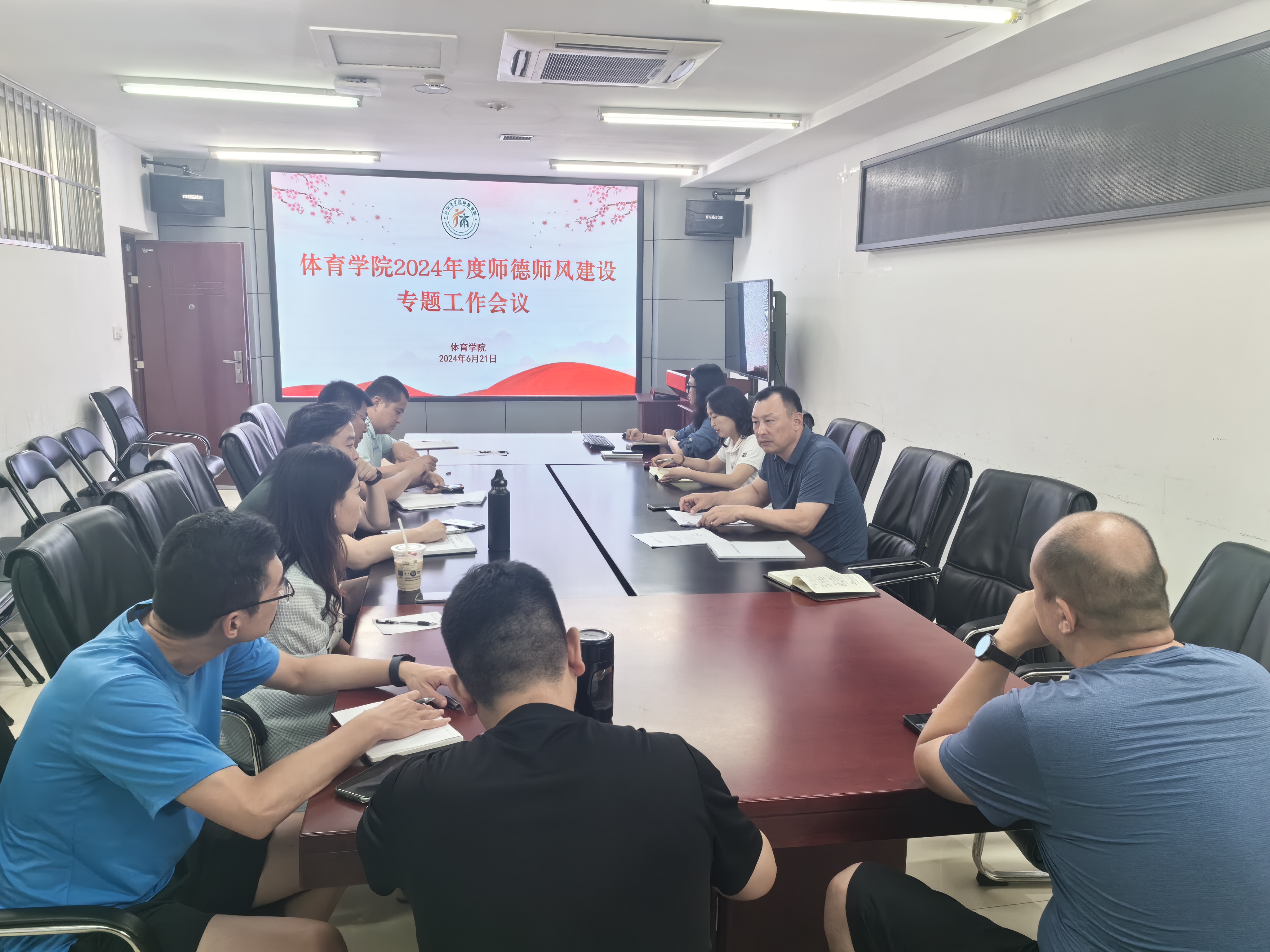 6月21日下午,体育学院在会议室召开2024年度师德师风建设专题工作会议。学院领导班子和全体科级干部参加,会议由学院副院长许胜利主持。
