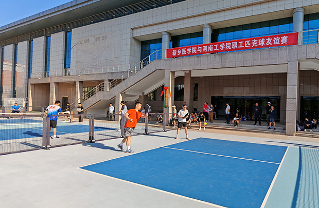 为丰富教职工文体生活,增进兄弟院校间的交流合作。5月11日下午,我校与河南工学院职工匹克球友谊赛在北校区体育馆举行。两校共计30余名教职工选手参与角逐。校工会主席武俊芳出席活动。