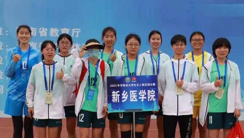 5月22日,新医女足在郑州市黄河科技学院举办的2023年河南省大学生五人制足球比赛中获得了第五名的好成绩。