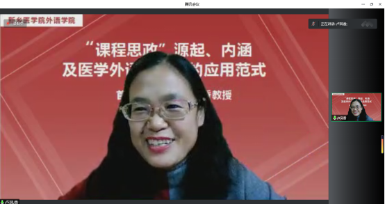 为加深外语学院教师对课程思政的理解,提升课程思政建设能力,12月7日下午,我院特邀请首都医科大学卢凤香教授通过腾讯会议线上直播方式,以“‘课程思政’源起、内涵及医学外语学科中的应用范式”为题,为外语学院全体教师献上了一场精彩的讲座。报告由外语学院院长任如意教授主持。
